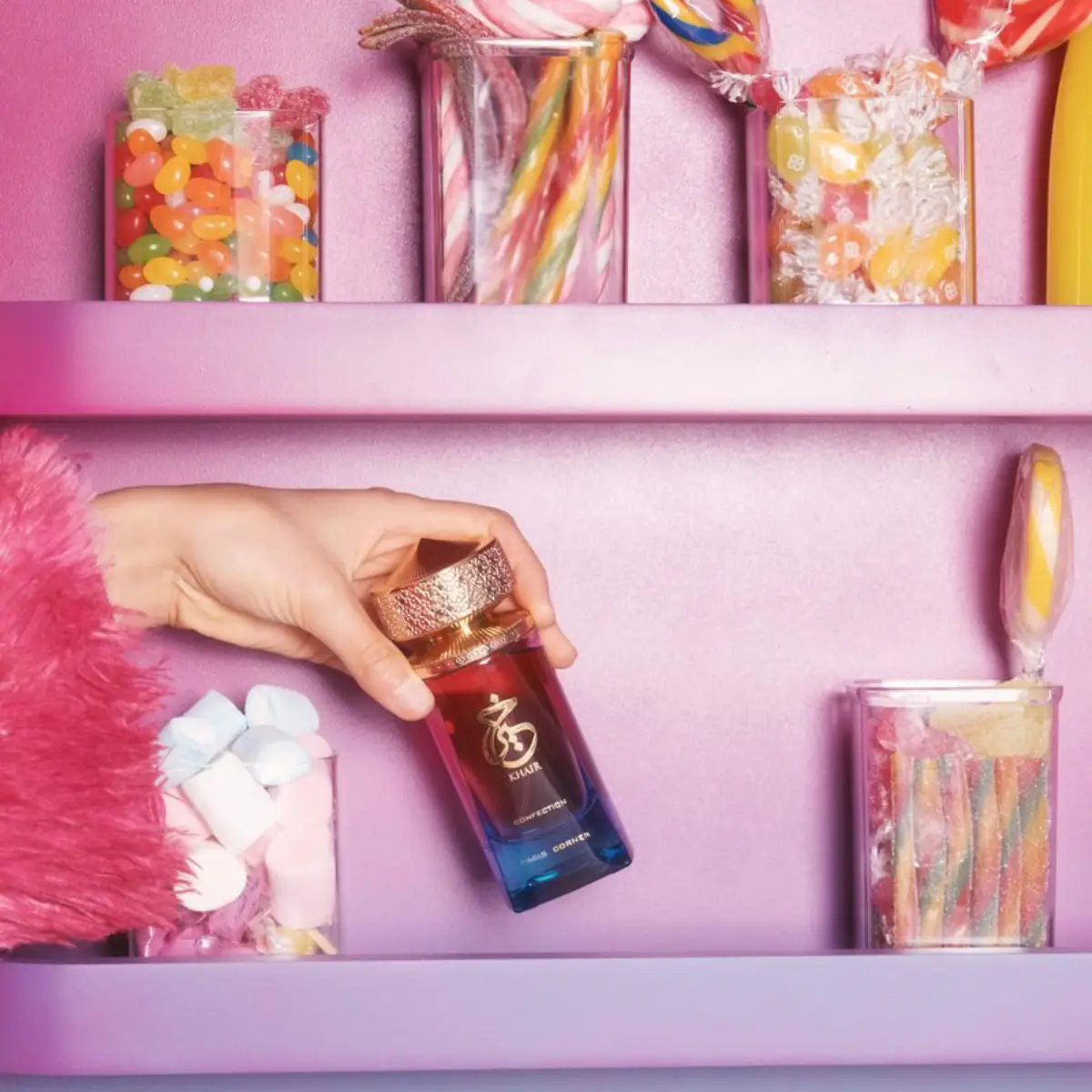 Step into a world of pure indulgence with CONFECTION, the latest in the Khair series, where sweetness meets sophistication. The fragrance opens with a luscious burst of pear and velvety whipped cream, evoking the irresistible allure of a freshly crafted dessert. As it unfolds, a heart of jasmine and ylang ylang adds a delicate floral touch, while cashmeran enhances the creamy, candy-like feel. Finally, the base of sandalwood, marshmallow, and vanilla wraps you in a cozy, sugary warmth, like the soft embrace of your favorite confection.